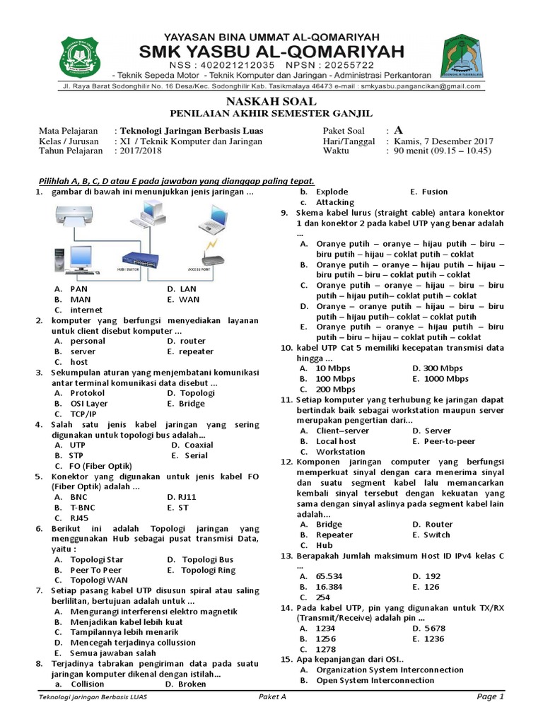 Ini merupakan soal uas matakuliah sistem operasi tuliskan nama anda secara. Kehidupan periode makkah soal 1. Soal disediakan dalam 3 paket soalmahasiswa memilih salah satu paket soal yang dinilai mudah.jawaban uas dikirim secara kolektif oleh ketua kelasjawban yang copy pasted pekerjaan temannya tidak dinilai.selamat bekerja… Soal ut ilmu komunikasi semester 4 lainnya: Video ini dibuat untuk melengkapi uas mata kuliah komunikasi data dan jaringan komputer r 06.