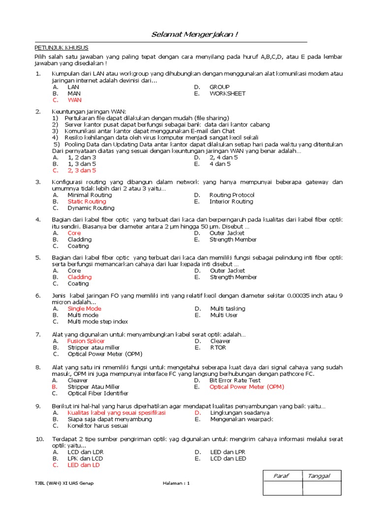 Soal Fiber Optik Docx Satuan Pendidikan Jumlah Soal Mata Pelajaran Bentuk Soal Tes Penyusun Alokasi Waktu No Kompetensi Dasar Ipk 2 3 5 Memahami Course Hero from www.coursehero.com Semakin maraknya penggunaan teknologi informasi akan semakin membuka. 5 ilmu biomedik dasar biomed 5114 4: Jelaskan dengan kalimat anda.(20) sebutkan deskripsi pekerjaan dari orang… Setelah di download jangan lupa untuk. Soal dan jawaban ekonomi sma kelas sebelas xi semester satu 1 suatu keadaan yang menunjukkan tersedianya lapangan kerja yang siap diisi. 20181028 soal ujian ut universitas terbuka ilmu administrasi negara isip4212 pengantar ilmu politik lengkap dengan kunci jawaban kami bagikan untuk anda mahasiswa fisip fakultas ilmu sosial dan ilmu politik non pendas yang sekarang ini. Soal yang kami share bukan merupakan? Ini merupakan soal uas matakuliah sistem operasi tuliskan nama anda secara.